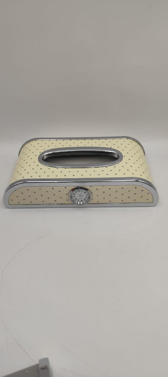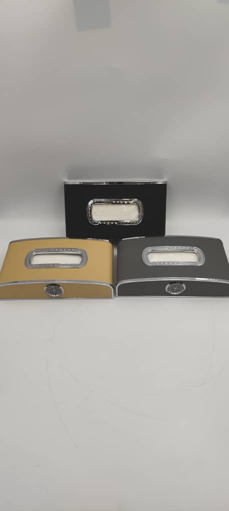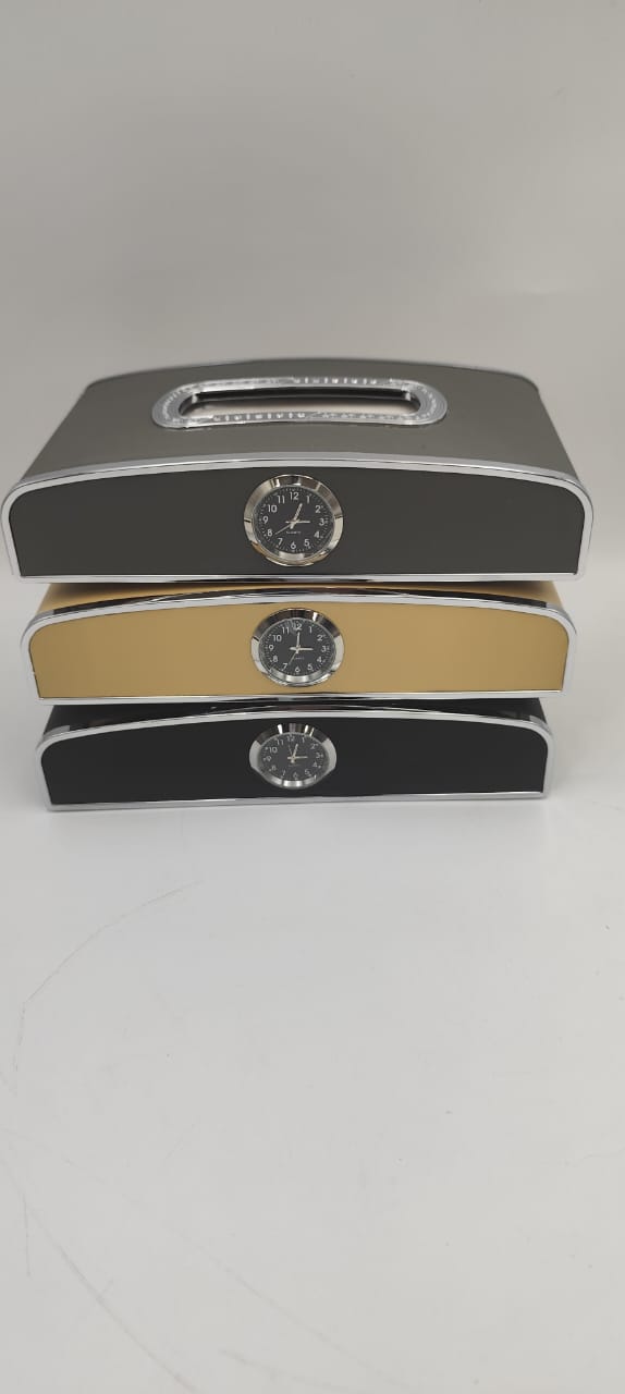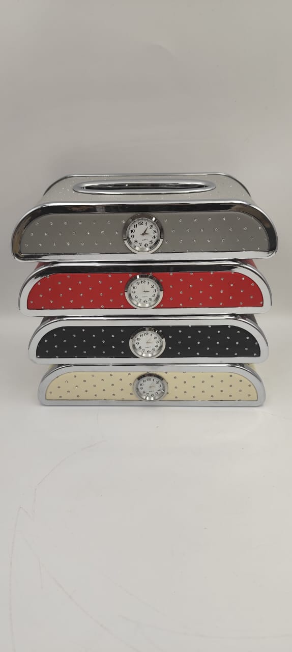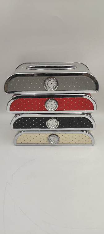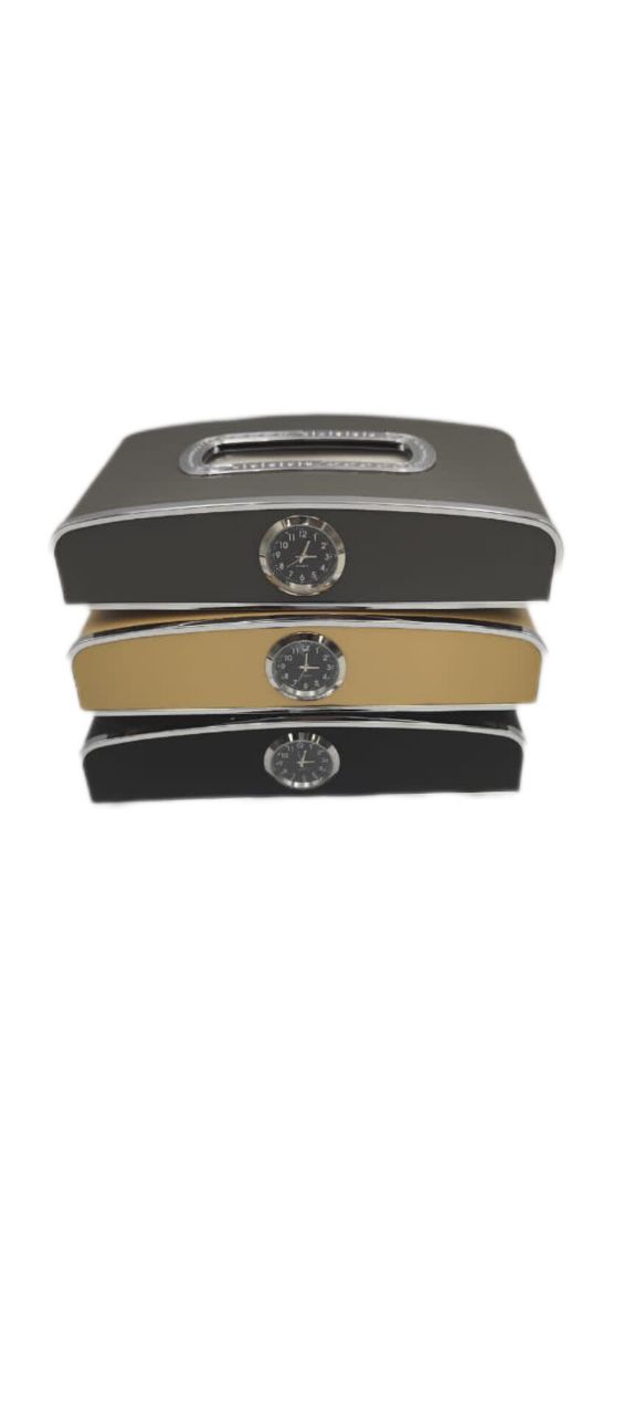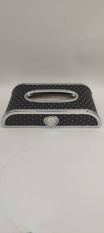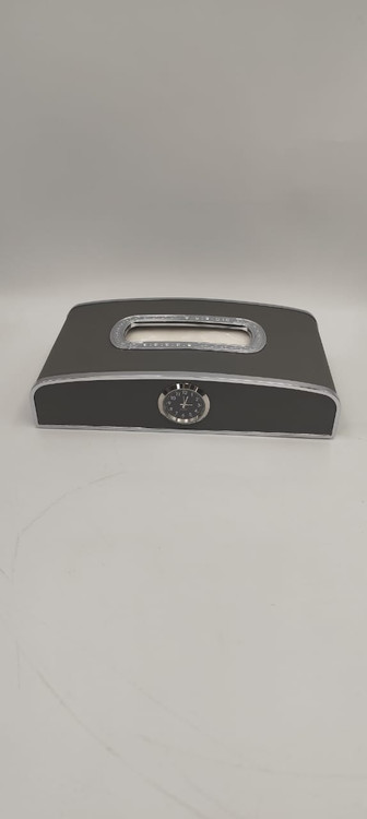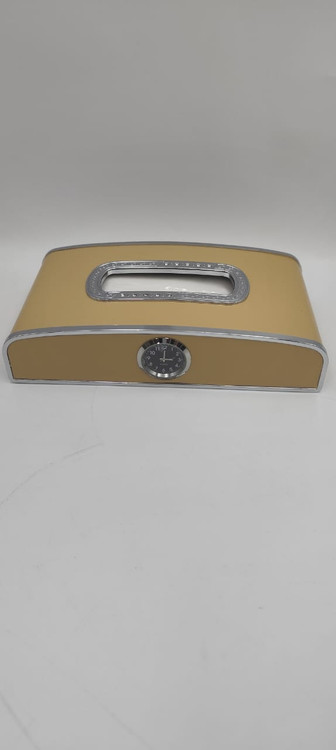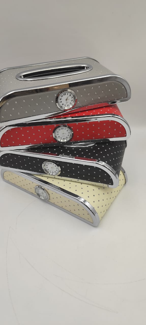 رویه چرم بسیار با کیفیت ،ترکیب فلز و چرم ،همراه با ساعت آنالوگ، بسیار شیک ،اقتصادی و کاربردی ،جای دستمال میخری ساعت هم دارید