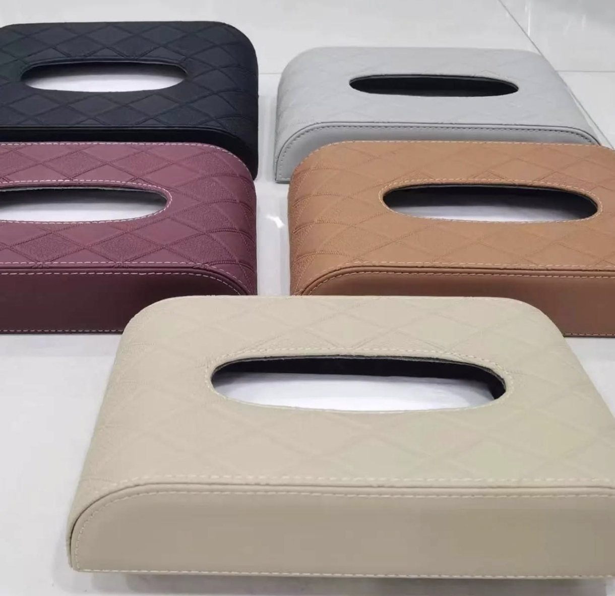جای دستمال کاغذی اتومبیل چرم ساده و طرح دار